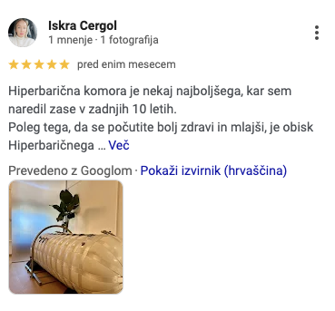 30 € bonus za spoznavanje učinkov hiperbarične oksigenacije.